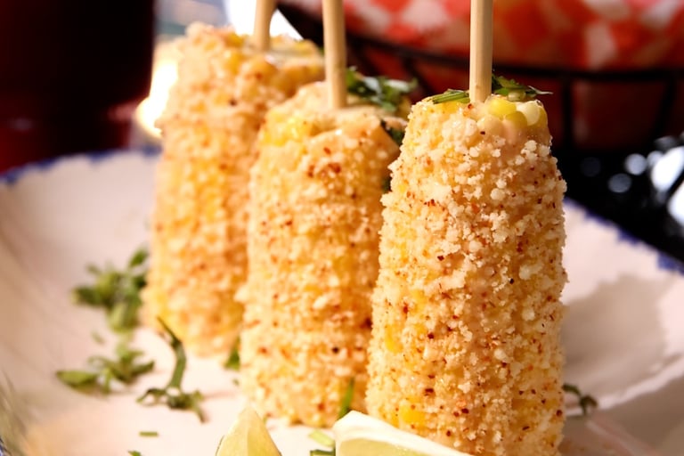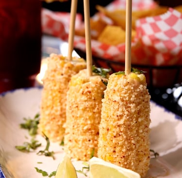 3 corn on the cob pieces slathered in a mayo chipotle sauce & garnished with cotija cheese and cilantro.