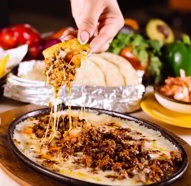 Melted cheese with choice of meat: Shrimp & Spinach, Steak, Chicken, or Chorizo. Served with Pico de Gallo & Tortillas.