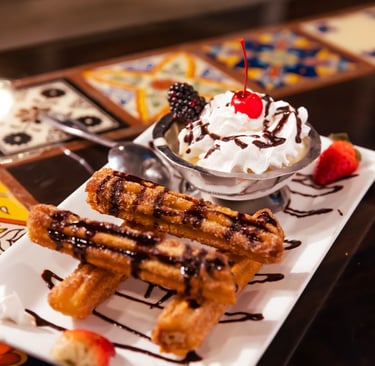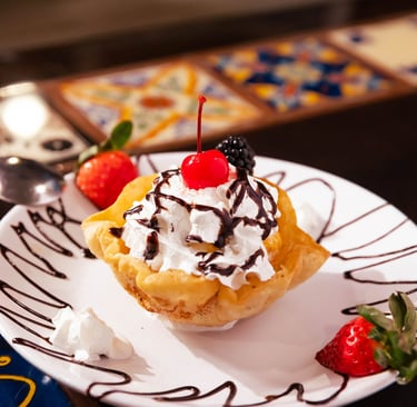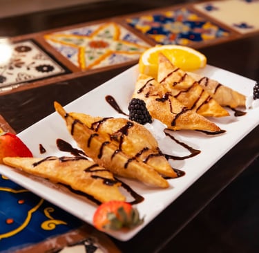 Deep fried flour tortillas, covered with cinnamon sugar and a side of honey.