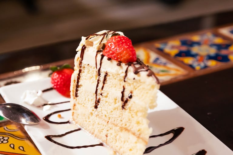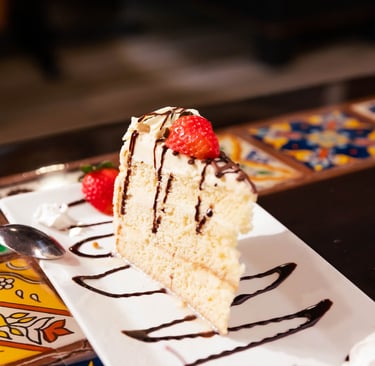 Ultra light white cake soaked in a sweet milk mixture, topped with whipped cream and cinnamon.
