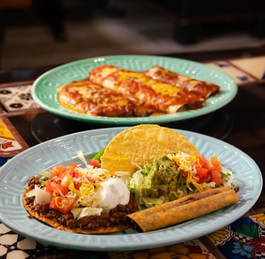 Four shredded beef or chicken flautas served with lettuce, tomatoes, sour cream & guacamole and choice of charro soup or tortilla soup.