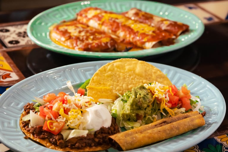 One Chile Relleno, one Beef Tostada, one Beef Enchilada, one Beef Taco, one Burrito & one Flauta.