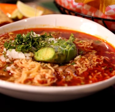 Fresh, homemade tortilla soup made with chicken and ramen.